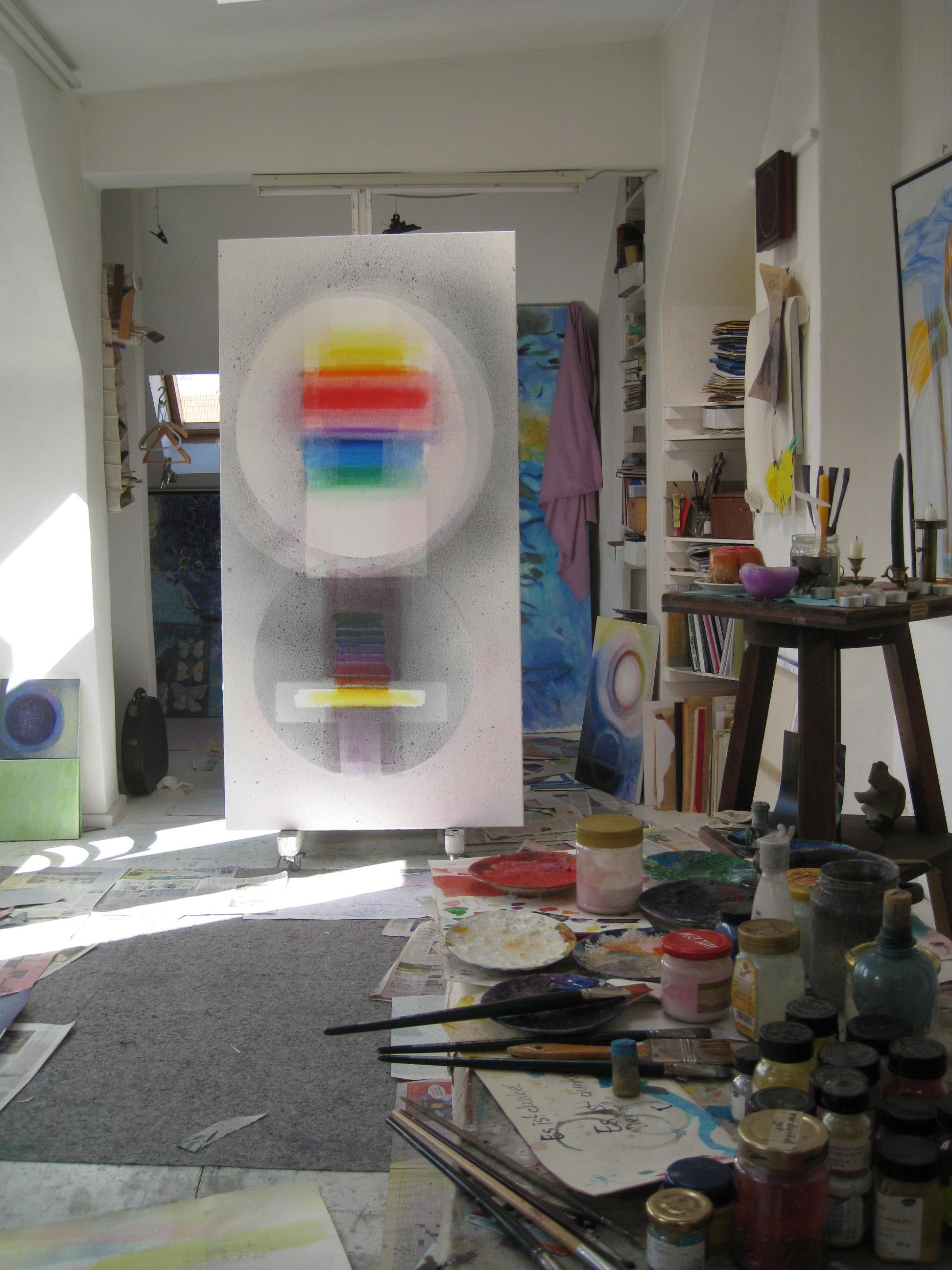 Die Farbe ist für mich weit mehr, als nur ein beliebig austauschbares Kolorit. Sie ist "Hauptakteur" der Grenzüberschreitung zwischen Diesseits u. Jenseits, Drinnen und Draußen, denn sie ist sowohl ein sinnlich Sichtbares, als auch ein übersinnliches eigenwilliges, dynamisches "Wesen", sie ist Persönlichkeit. Meine Biographie veranlaßt