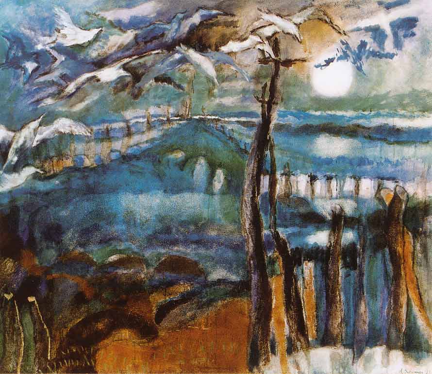 Wattenmond und Möwen, Sylt 1993, Acryl, Sand, Muschelkalk/Lwd. 130x150 cm